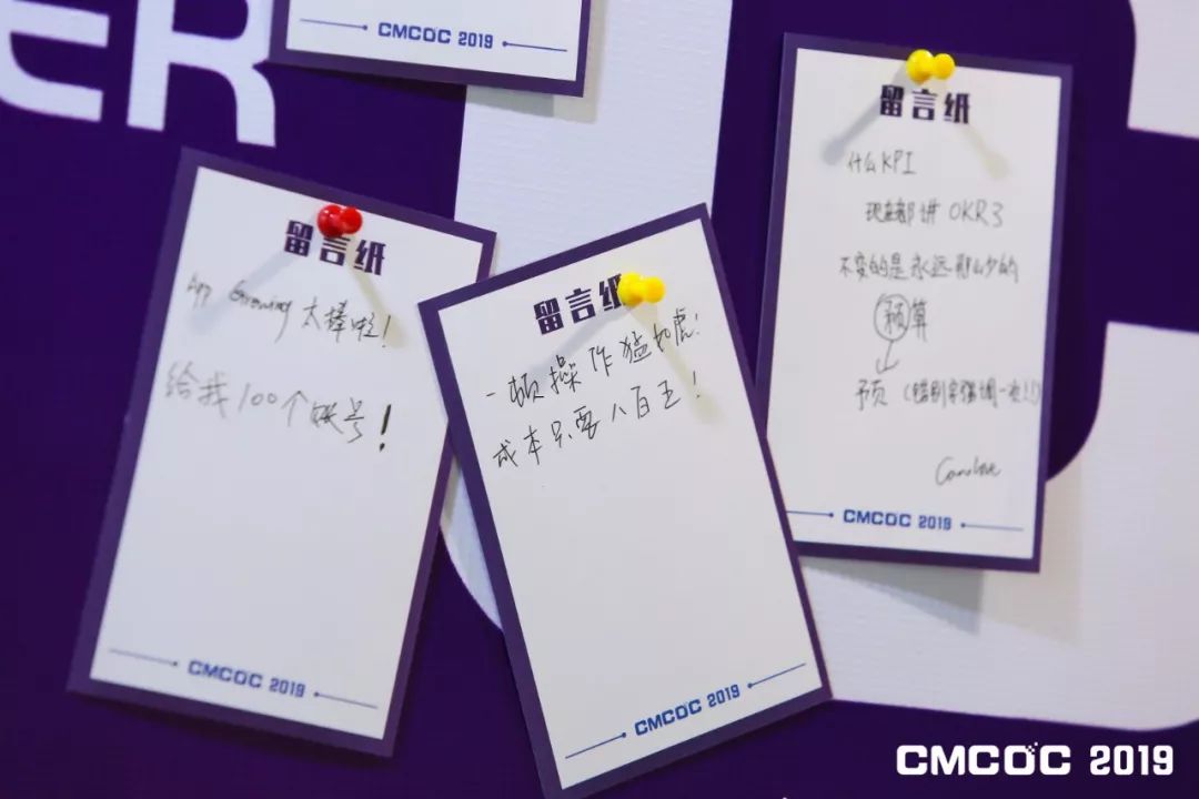 除了主会场和三大独立论坛,场外的垂直互动区也聚集了一群喜欢社交和新事物的优化师们,他们在留言板前拿着优化师“行话”Slogan拍照,写下自己对生活、工作甚至对爱情的寄语,期待被有缘人看见。