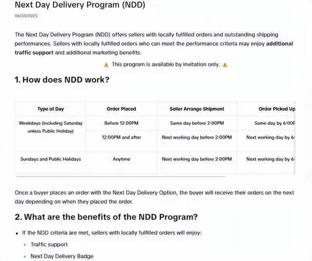 TikTok Shop的卖家后台已经明确写出:NDD订单享有更多流量曝光,退货/延迟率太高会被处罚。