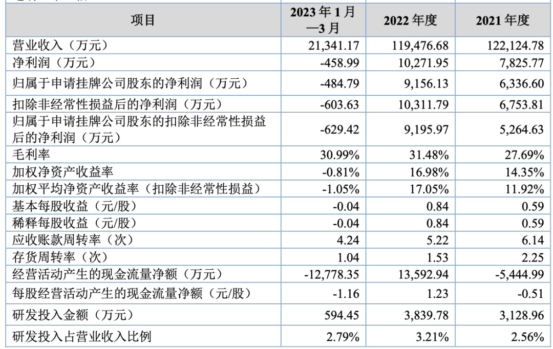 晶华光学2021年、2022年及2023年第一季度营业收入分别为12.21亿元,11.95亿元和2.13亿元,净利润分别为7826万元、1.03亿元和-459万元。