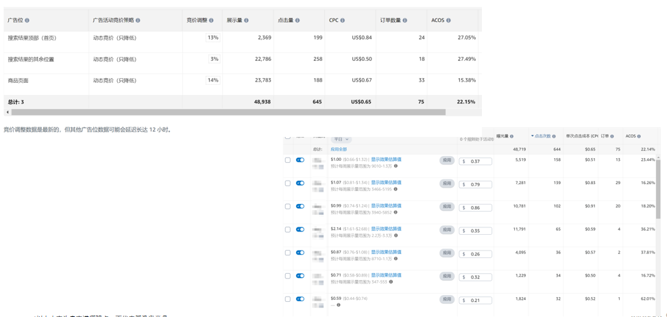 结合ASIN流量结构和最终出价设置、调整基本出价,及调整分广告位出价