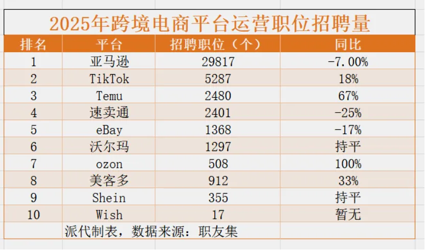 以亚马逊平台为例,运营岗已进入“缩量提质”阶段。