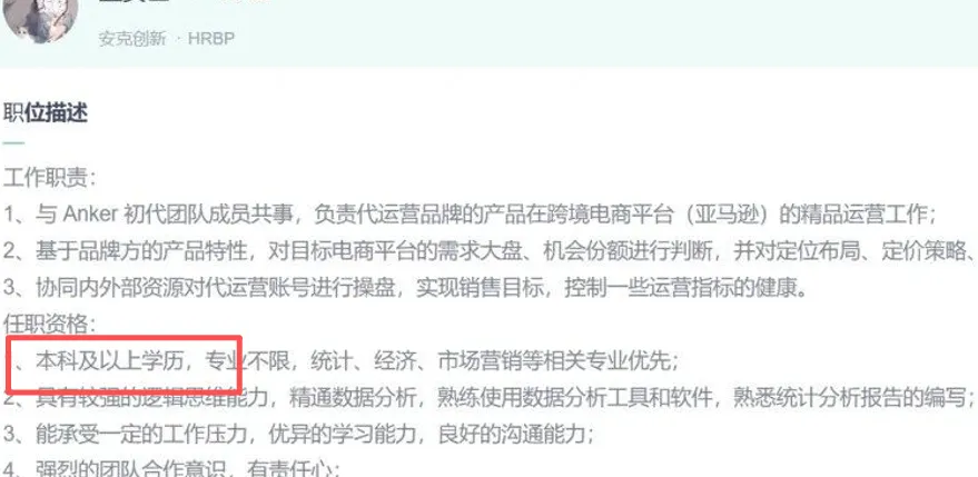 如赛维、安克等头部企业更是把本科学历设为基础门槛,偏爱有0-1爆款打造经验、能对项目利润全权负责的复合型人才。