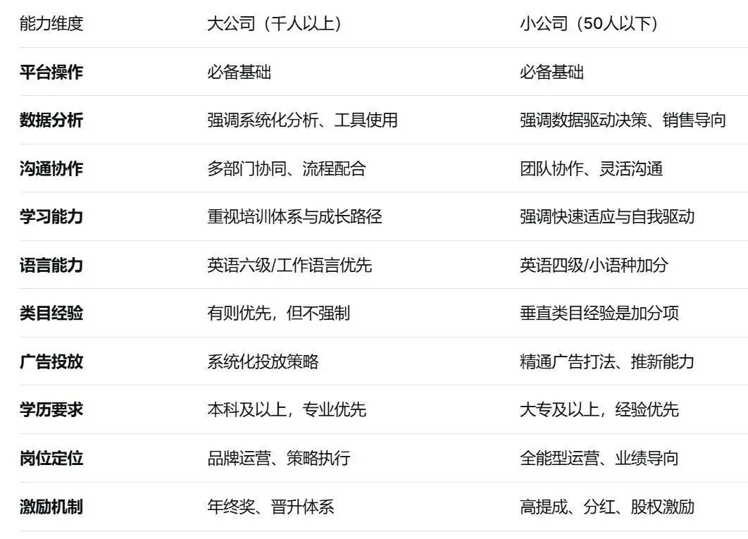 而中小公司则更注重实操落地,要求员工“多面手”。