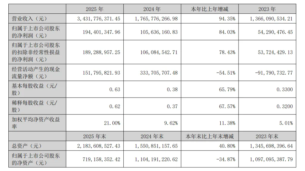 2025年,若羽臣交出亮眼转型成绩单,全年营收34.32亿元,同比增长94.35%,归母净利润1.94亿元,同比增长84.03%,其中自有品牌营收达18.13亿元,同比暴涨261.94%,占总营收比重超52%,已成为核心增长引擎。
