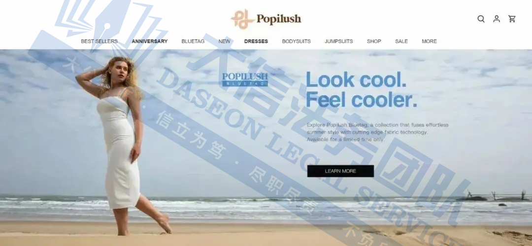 原告是成立于2022年的美国的互联网时尚品牌公司,Popilush 颠覆传统塑形衣隐藏式设计理念,将塑形功能直接融入日常服饰中,推出连衣裙、连体裤、紧身衣等一件式解决方案,帮助用户塑造腰线、提升臀部曲线的同时保持外穿的美观性,无需额外搭配内衣或塑形裤。Popilush 通过创新设计打破传统塑形衣的刻板印象,赋予女性舒适自信的力量。
