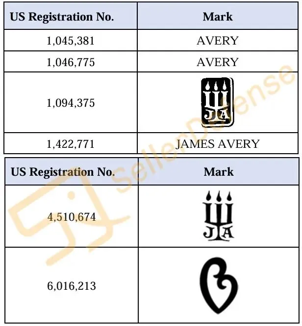 原告品牌:JAMES AVERY 珠宝