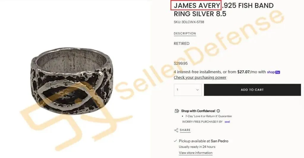 原告 James Avery Craftsman, Inc. 是一家总部位于德克萨斯州的家族企业,专门设计和制作高品质手工戒指、手链、项链、吊坠、耳环和其他珠宝首饰,并以其独特的设计和对细节的精益求精而闻名。本案为商标+版权双重维权,版权图片未公开,以下商标和官网相关产品图未经允许不得使用!