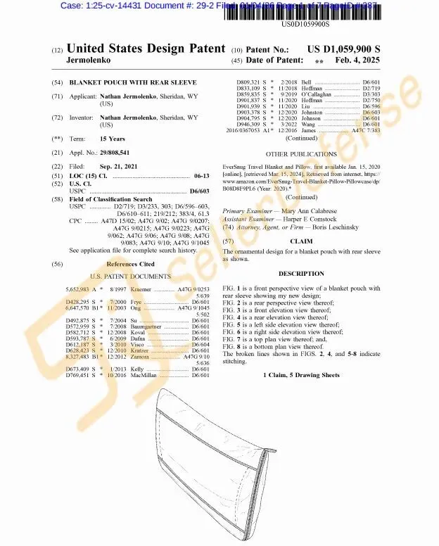 Kuiper Ventures LLC 是一家注册于美国的有限责任公司,专注于旅行装备的设计、生产和销售, 其核心品牌 EverSnug 主打便携式旅行毯等产品,强调“可折叠、易悬挂”的特性以解决旅行中的保暖和空间占用问题。案件涉及商标和专利已曝光如下,请相关卖家注意排查避雷!