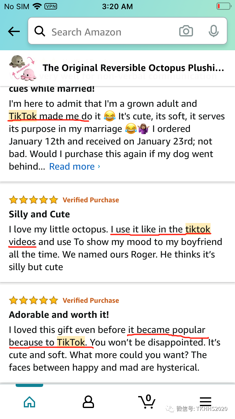 其实这个心情章鱼在国内也有小火过一阵子,但前段时间在TikTok上频频能刷到有关心情章鱼的视频,各大博主都纷纷推荐,在亚马逊上面也一度爆单,可以看到评论里,很多人都是因为在TikTok上看到视频引发了他们购买的欲望。