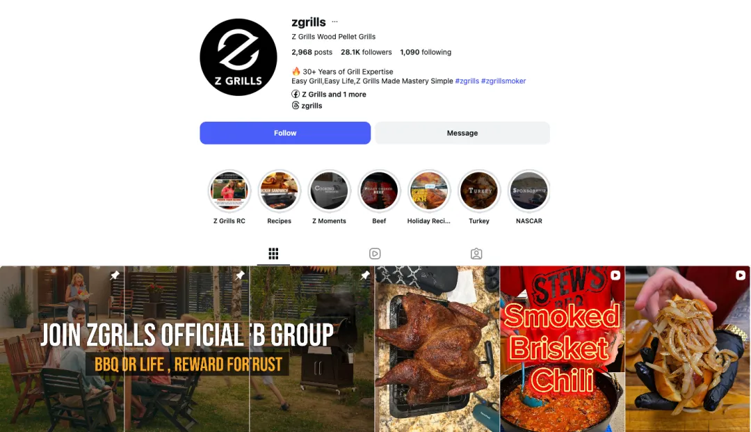 因此,在Instagram和Facebook等主流社媒平台上,Z Grills的内容策略可以用“Show, don't tell”来总结。