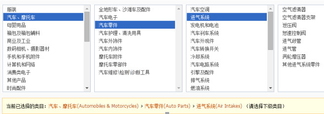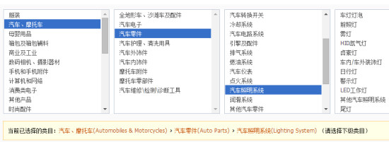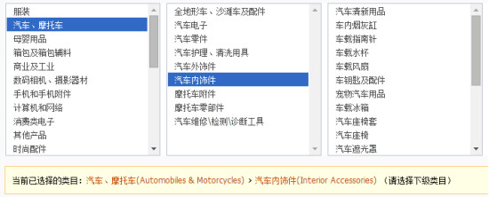汽车、摩托车(Automobiles& Motorcycles),细分类目见下图红框