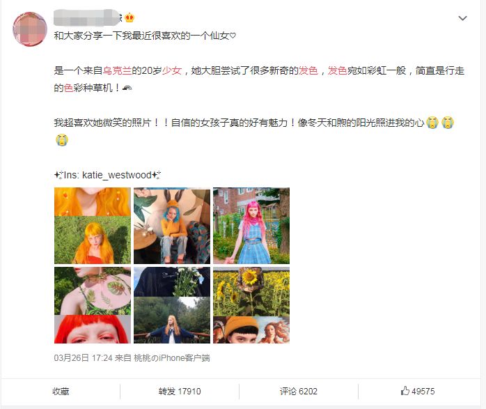 这位登上新浪微博热搜榜的00后少女名叫 Katie Westwood,来自乌克兰的她在微博的粉丝只有3万多,但她在Instagram的粉丝有62万。