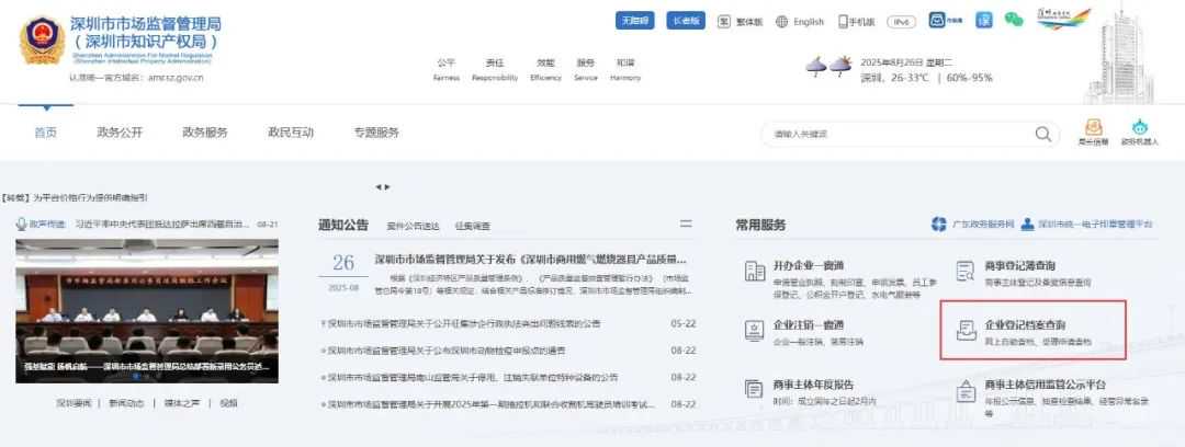 比如在深圳注册的公司可以前往深圳市市场监督管理局,点击企业登记档案查询
