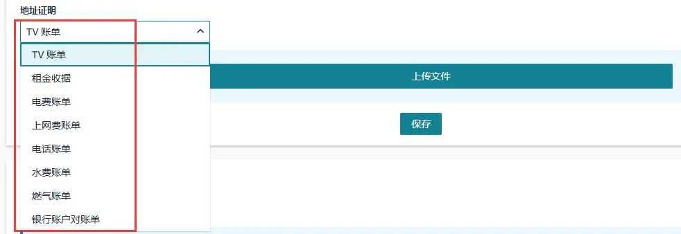 其中地址证明文件比较多,可以选择电费、网费、水费、燃气和银行账户对账单等。
