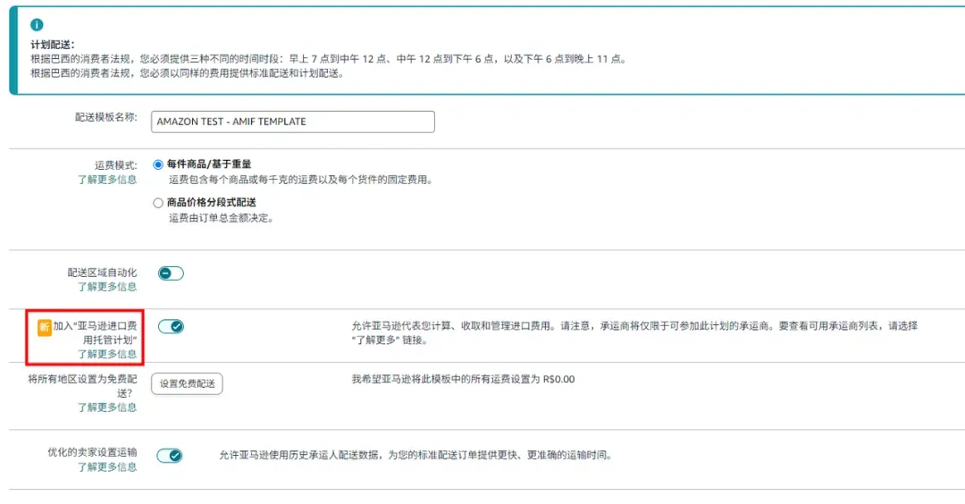 亚马逊巴西站点已于2026年4月1日起强制执行AMIF模式切换,请各位卖家及时核查平台店铺后台AMIF模式切换完成情况,切换未成功的店铺需尽快完成手动切换操作。若店铺账号后台未完成AMIF模式切换,后续生成订单将无法正常办理清关手续,直接影响订单履约流程。