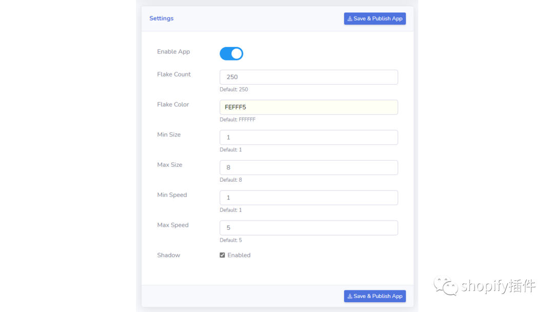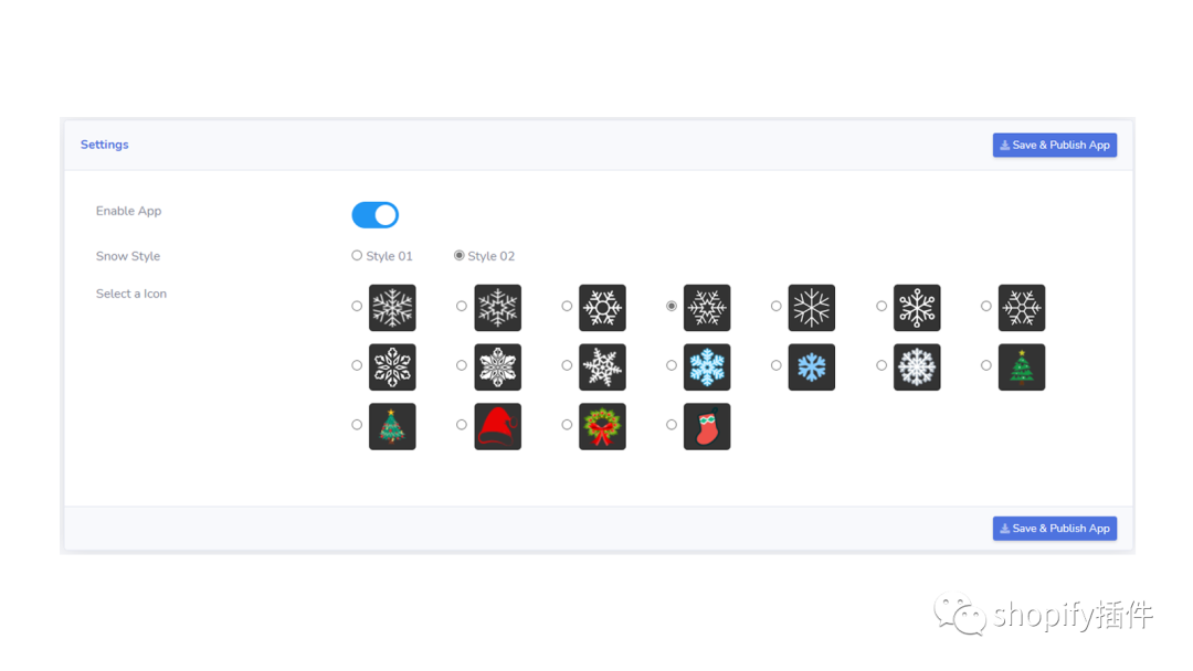 这款产品是shopify应用市场最近才推出来的,因为是特地为圣诞节做的,所以其他月份安装也意义不大,名字叫做Christmas snow,他使用非常简单: