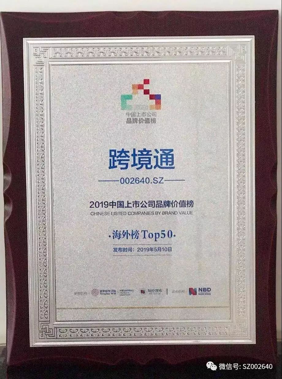 跨境通荣获“中国上市公司品牌价值榜-海外榜TOP50”