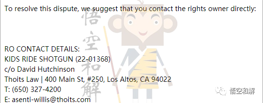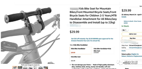 今早悟空收到亚马逊卖家反馈,一款新产品展开维权,品牌为KIDS RIDE SHOTGUN 儿童自行车,有图片版权。
