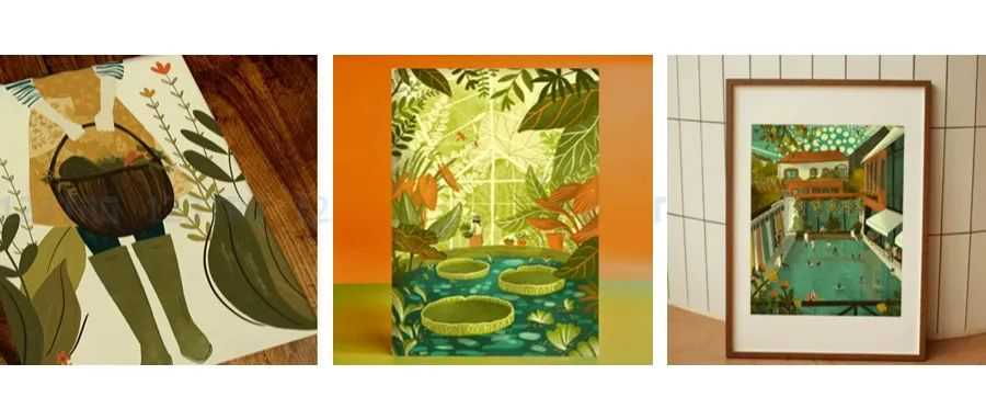 原告Courtney Morgenstern用自然为灵感创作,作品融合当代元素、无缝纺织图案、水彩和手绘字体,她的作品多数用在贺卡、地毯和面料设计。