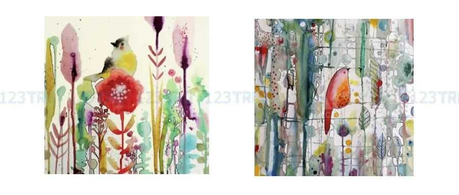 Sylvie 小鸟水彩画