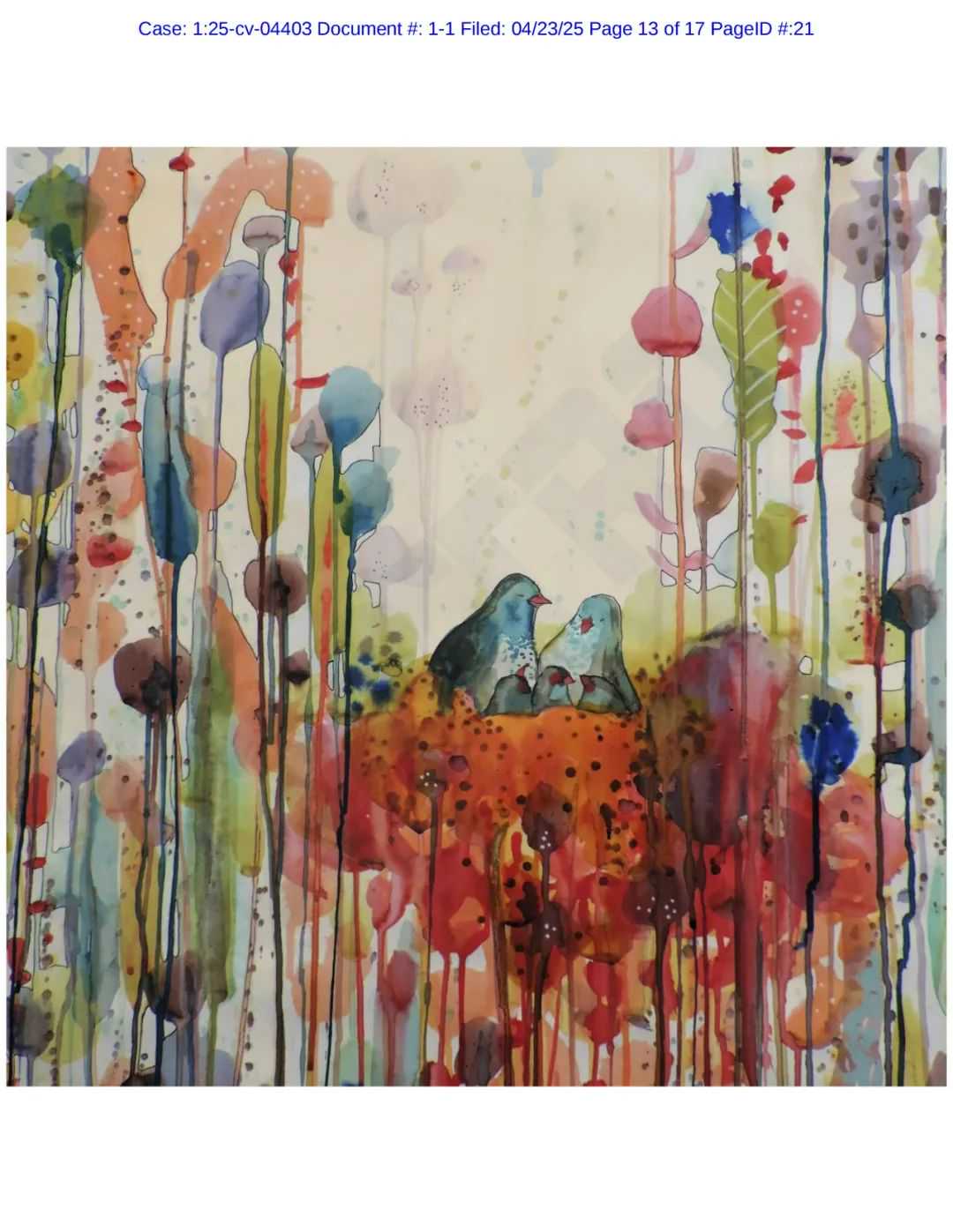 原告Sylvie Demers的作品充满想象力的奇幻描绘,而且大胆用色,画作主要以花卉、鸟类和肖像为主,他的作品在北美及全球多个私人收藏中展出。
