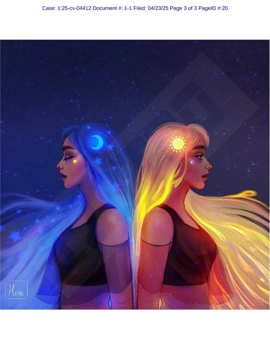 原告原名是Jasmina Mohamed Belarbi,以“Art of Mina”的代号从事自由插画师和概念艺术家的工作,作品风格比较奇幻,经常包含魔法、超自然的元素。原告产品在esty和线下都有售。
