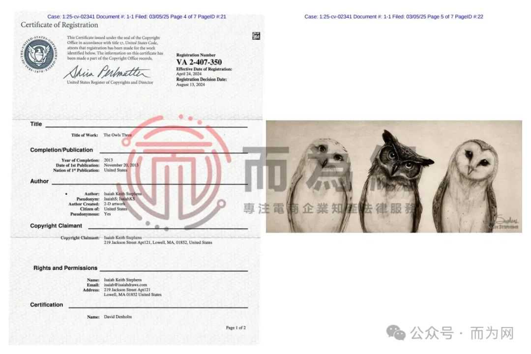 【侵权快讯】25-cv-2341 Keith全新版权案曝光!这三张动物肖像画正在维权,立刻下架!