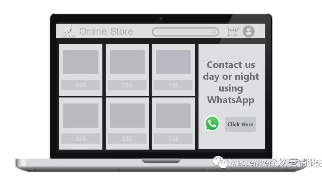 电商主页按钮,在主页设置一个按钮,邀请网站访客使用WhatsApp解决问题。