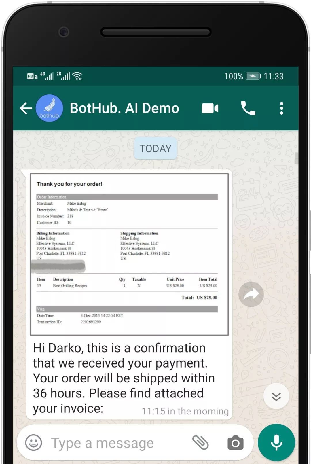 WhatsApp Business API在消息传递中应用的端到端加密技术,可以保障敏感信息的安全。电商可以通过WhatsApp给用户推送交易确认,发票等。保证用户可以及时了解交易的状态,同时确保用户个人信息受到保护。