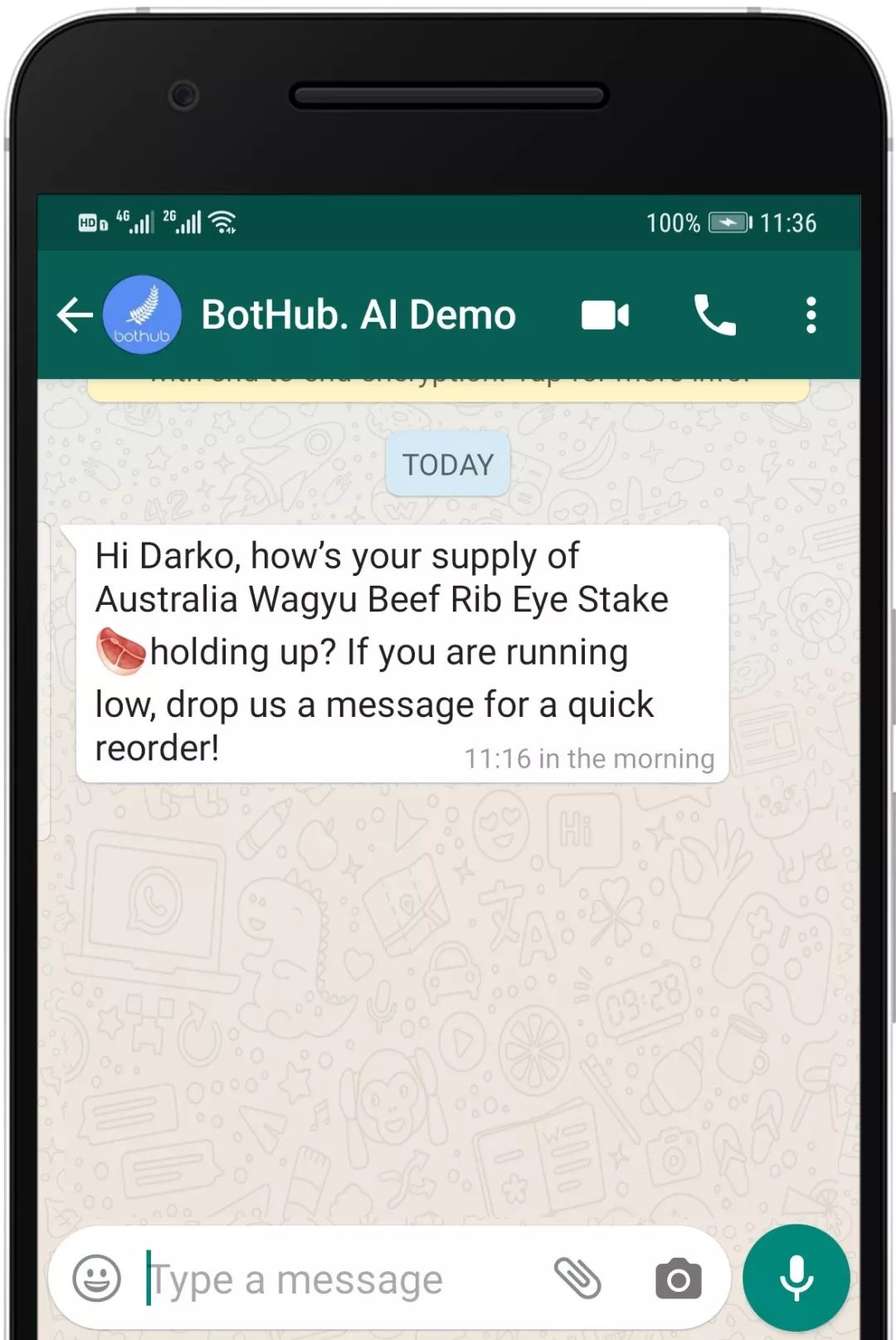 大部分线上销售的产品都有固定的生命周期,需要重复采购。但是会有很多到时间没有复购的用户,可能太忙忘记了,或者正在考虑别的品牌。电商可以对这些用户进一步推动复购。和购物车召回的客户一样,用户查看WhatsApp消息的频率比传统的email方式要高很多。