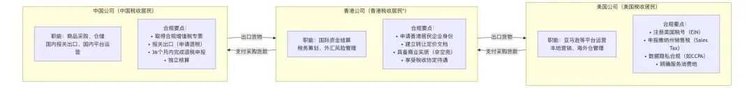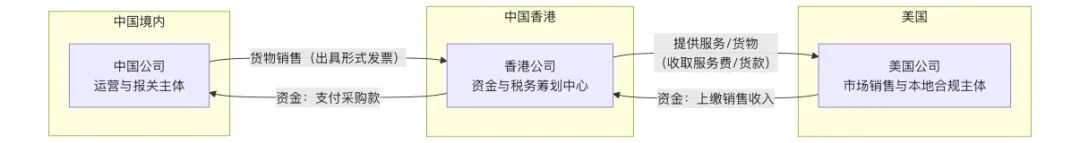 中国公司(出口主体) → 香港公司(资金结算) → 美国公司(本地运营)