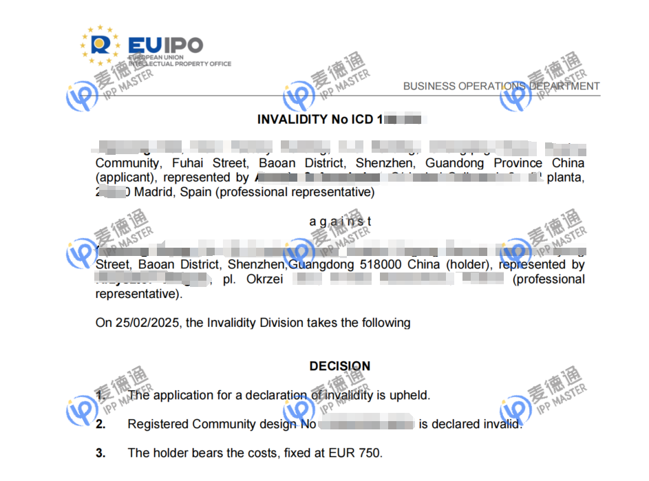 24年9月,客户咨询我方,希望对2022年12月获证的欧盟外观专利发起无效。