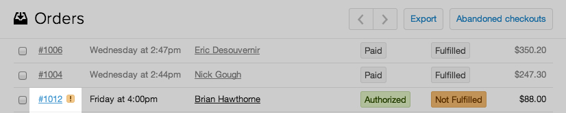 - 1,进入你的Shopify店铺后台,点击左侧菜单Orders,进入订单页面.