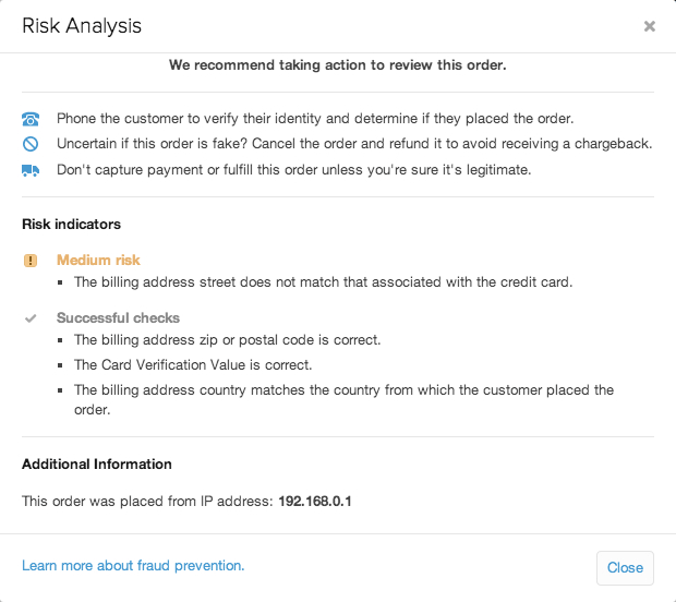 Shopify风险分析功能可以降低欺诈订单的机率: