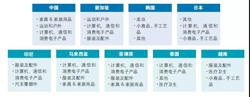 亚洲市场的重点销售领域与自身优势也各有不同。