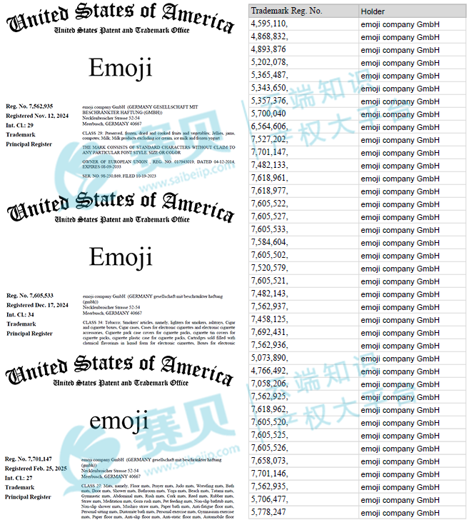 Emoji表情包又发起TRO维权了!赛贝通过自主研发的 TRO 案件查询系统查到,德国的emoji company GmbH委托HSP律所,在伊利诺伊州提起了编号25-cv-07516 的TRO诉讼,瞄准的是“EMOJI”商标的多品类侵权行为。