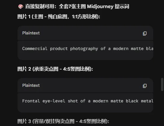 这套提示词能够帮你构建出极具质感的图片“毛坯”,最后配上规范的排版和文案,你的Listing视觉就能直接对标甚至超越这个竞品了。
