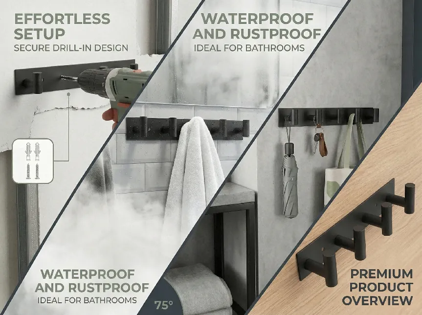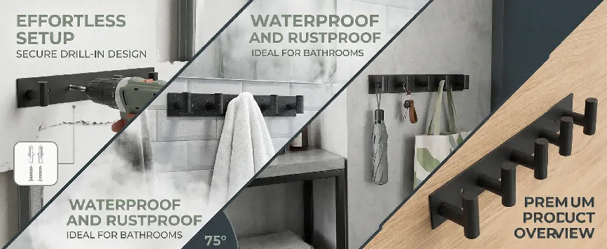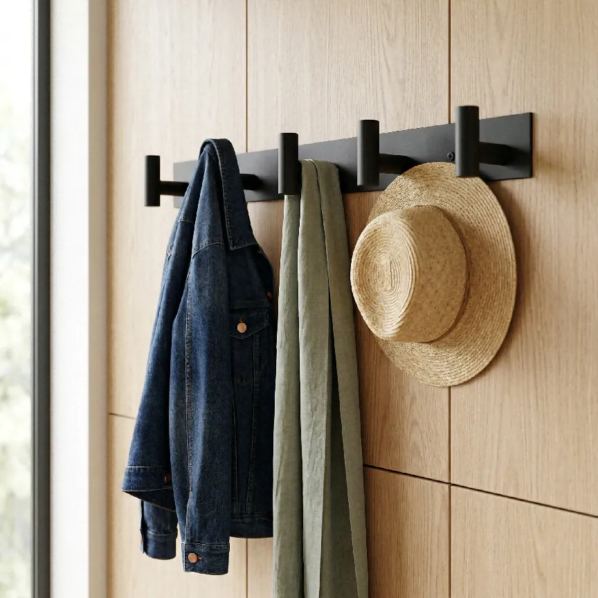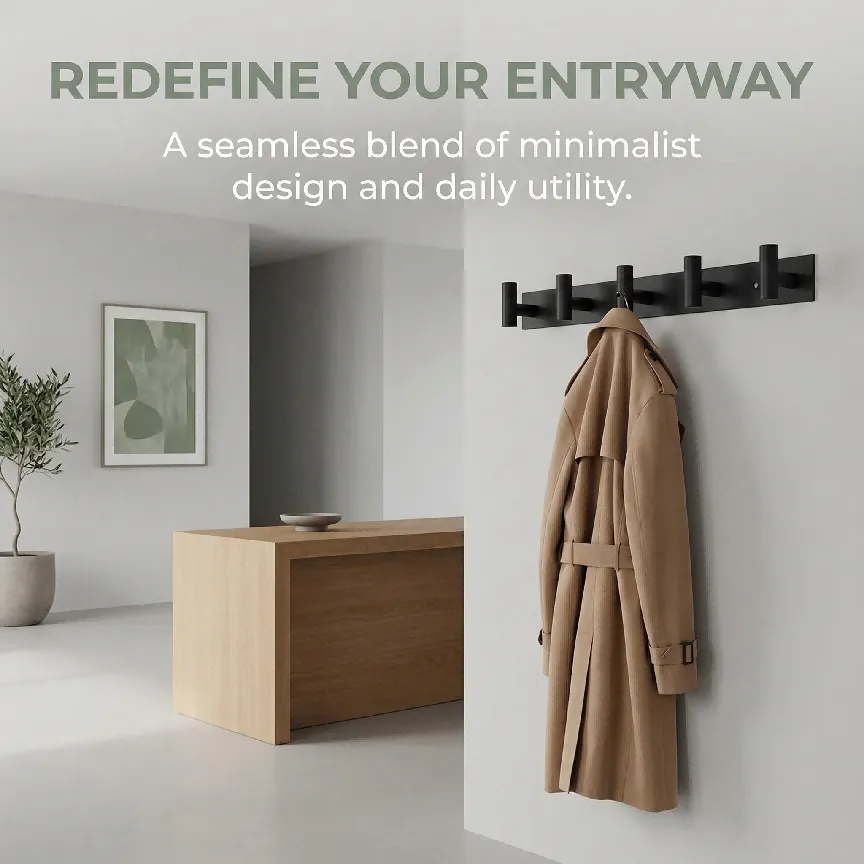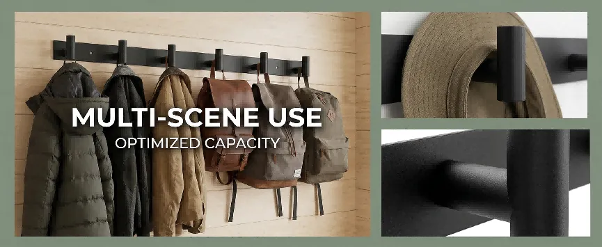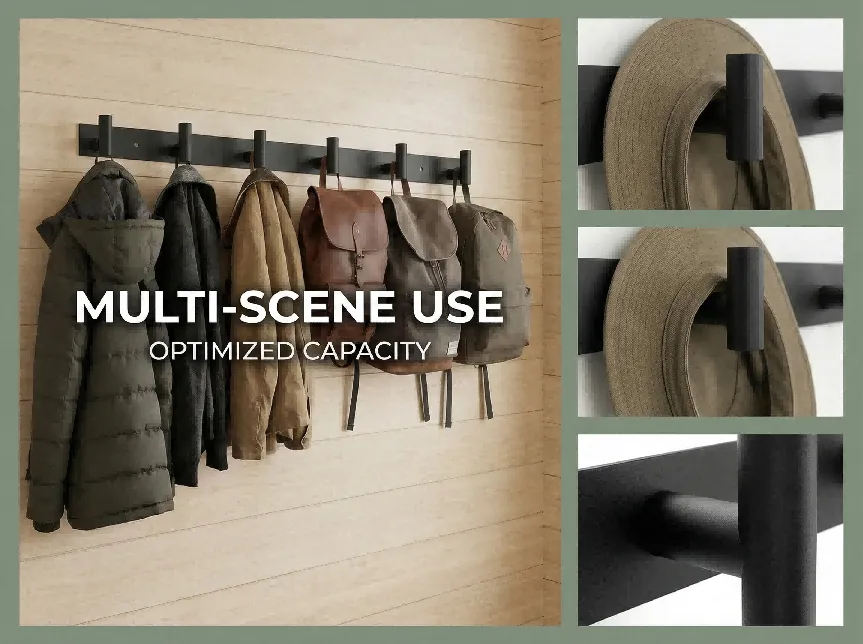 [目标受众]:追求极简主义风格的家庭住户,适用于玄关收纳外套、浴室悬挂毛巾、卧室收纳背包等场景