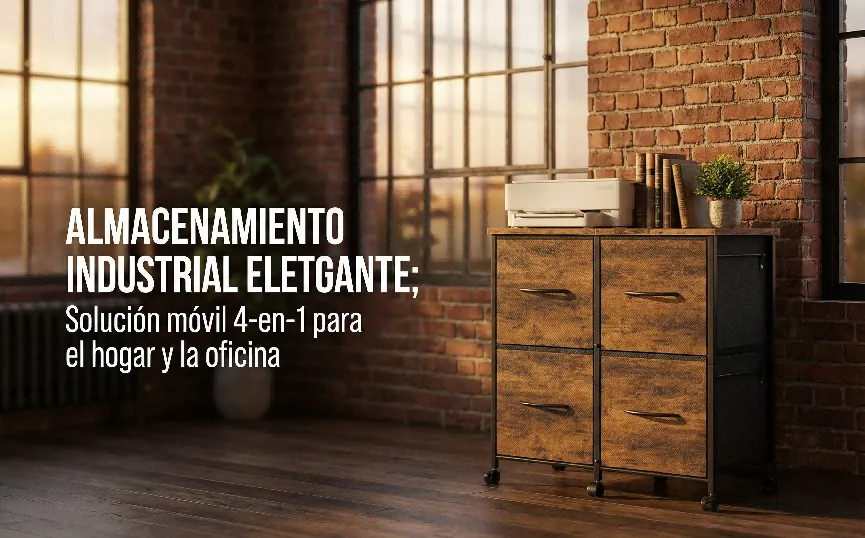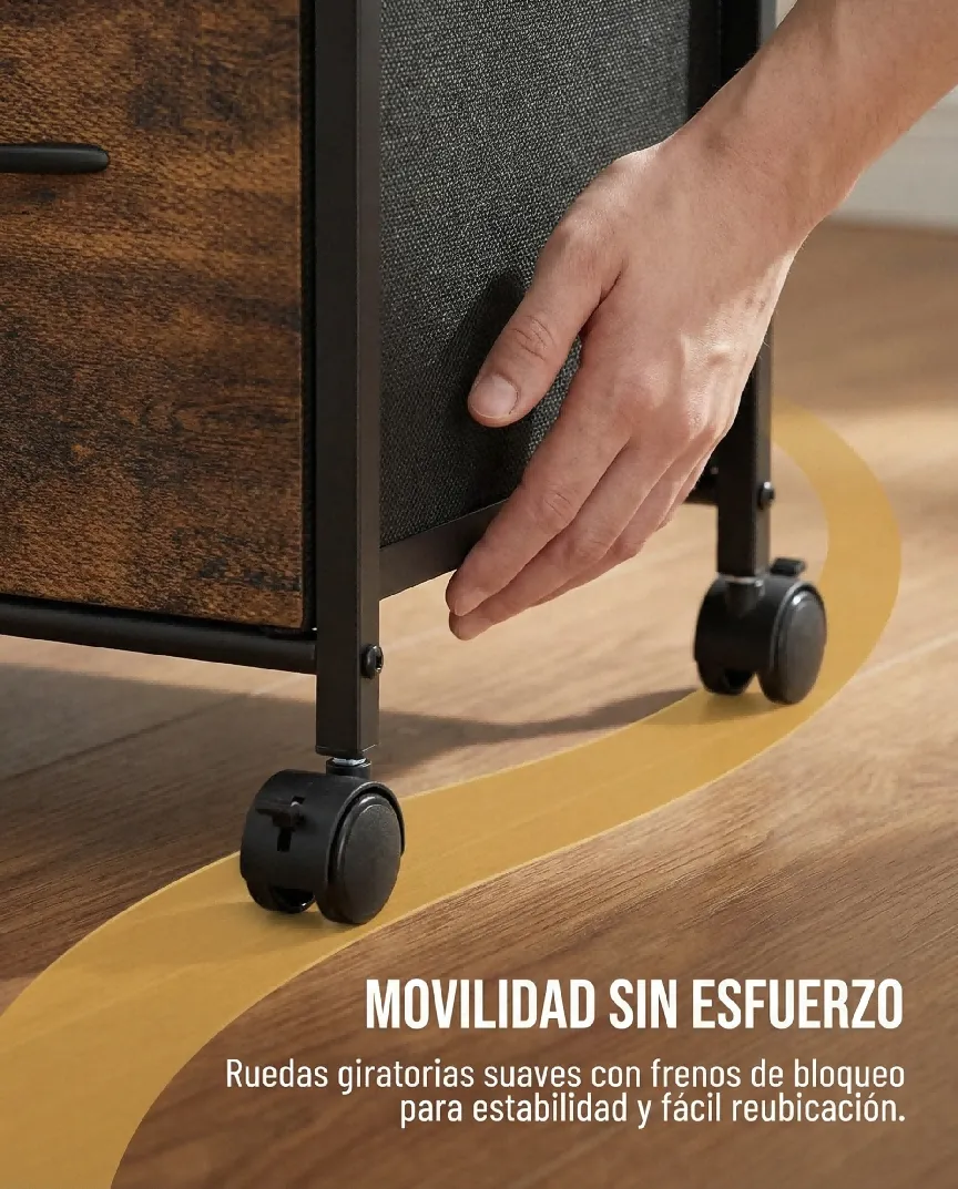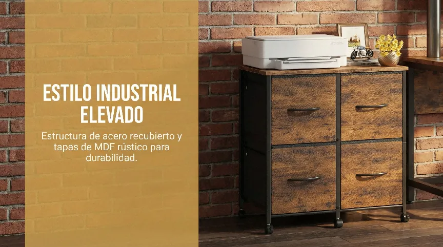 [产品名称]:移动式四抽屉工业风文件收纳柜 (Rustic Mobile Storage Cabinet)