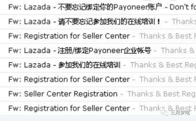 7. 之后会收到一系列登录卖家中心并更改新密码的邮件以及参加培训和注册 p 卡的邮件。