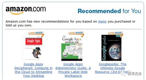 2、向客户发送定制的产品推荐邮件 电子邮件营销仍是最有效的营销策略之一,实用且价格实惠,能促进转化率的提高。为了获得更多的客户参与,个性化的电子邮件产品推荐是你应该努力的方向。毕竟,电子邮件的内容越相关,客户点开可能性越大,网站访问量和销售额也会相应提高。亚马逊在这方面同样树立了很好的榜样,其人工智能系统定时向客户发送邮件,推荐客户浏览过的产品。
