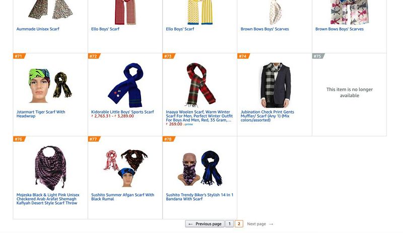 上图截取自亚马逊印度站围巾小类,Top100只有78个产品。