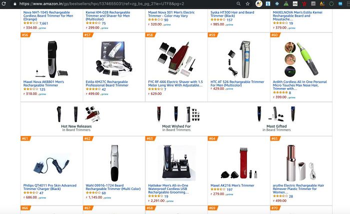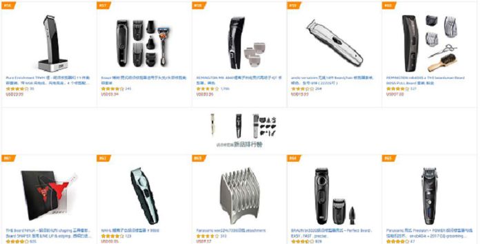 上面两张图分别来自亚马逊美国站和印度站剃须刀best sellers 中TOP 56-65的产品分布: