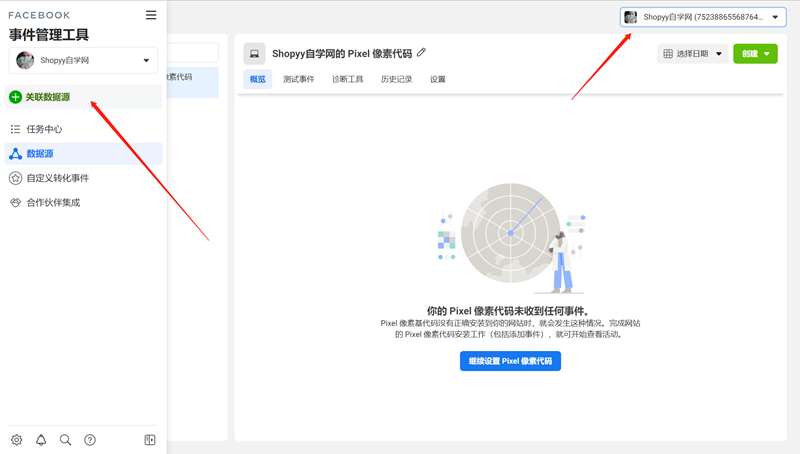 1、登录FacebookBM,获取像素ID和访问的口令