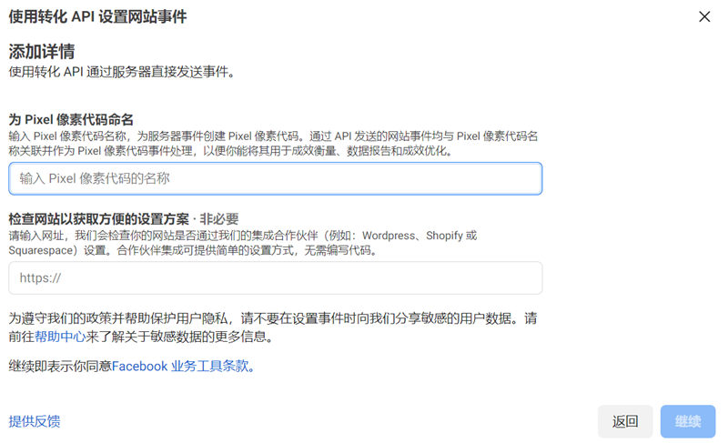 以下介绍两种场景,即新的用户直接建立Facebook像素+API转化;