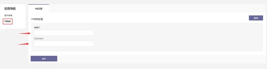 7、点击FB像素,添加ID和口令(可多个)