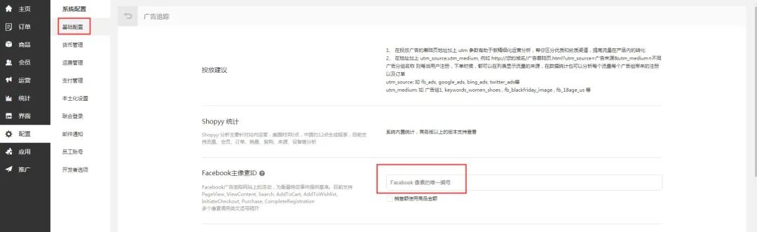 添加完成保存后,后台->配置->广告追踪->Facebook主像素id ,像素编号会同时更新