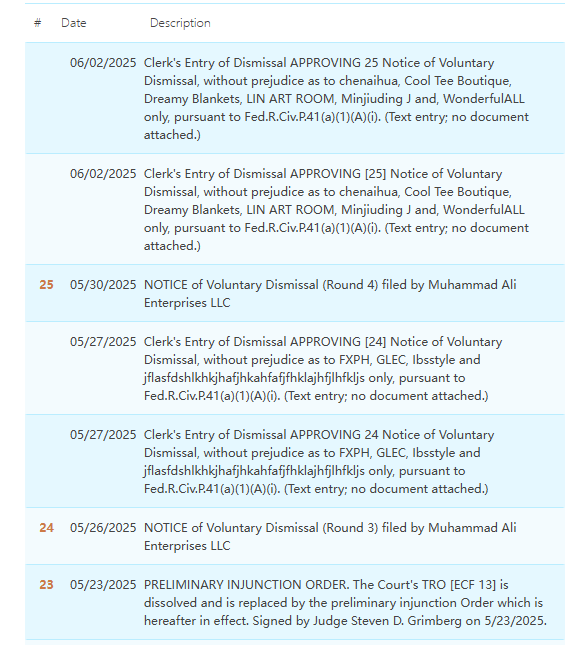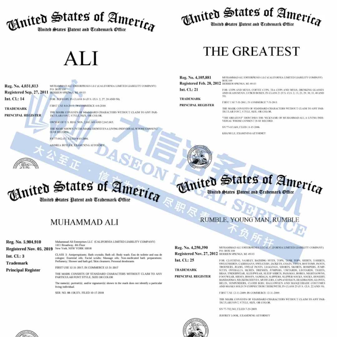 此案为商标维权,此次维权涉及多个商标,包括“Muhammad Ali”、“Ali”、“The Greatest”等。此次案件涉及被告174家店铺,以下是涉及商标的具体信息,未经授权不得擅自使用,侵权风险极高!跨境卖家尽快检索下架,避免造成TRO侵权损失!