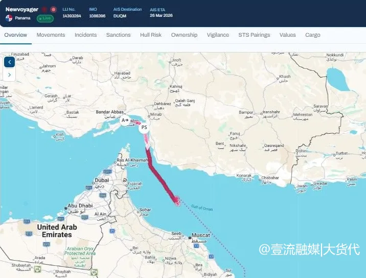 而对于NEWVOYAGER号也从这一通道穿越霍尔木兹海峡,劳氏日报报道称,NEWVOYAGER号成为自该通道建立以来,又一起航运公司向伊朗支付通行费的案例。