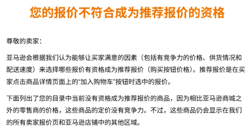 反复丢购物车的原因通常就是亚马逊抓取到了其他平台上的相同或高度相似商品,并认为你当前站内的价格没有优势。如果收到如下截图就更加确认了。